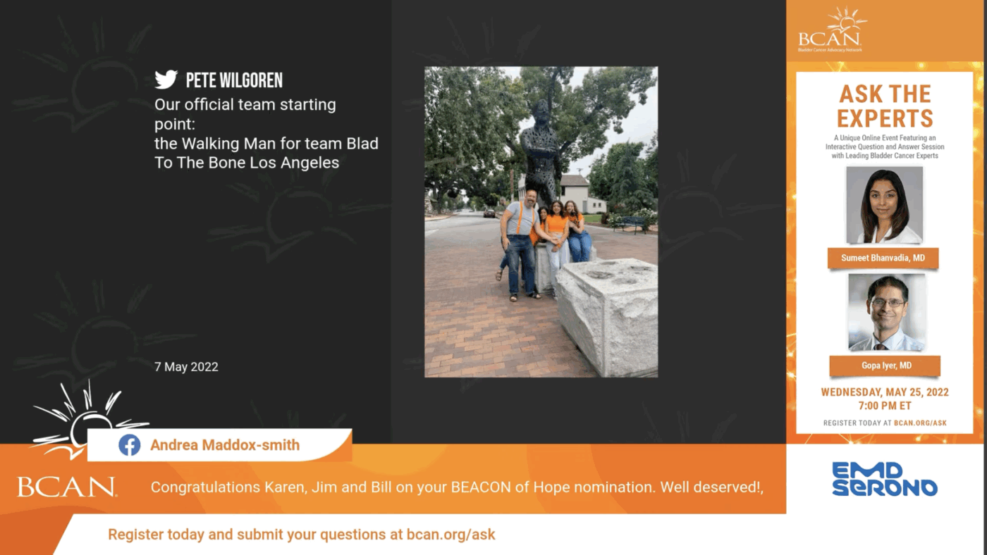 The virtual walk was an astounding success, successfully meeting its goals for quality and engagement while successfully bringing the bladder cancer community closer together regardless of face-to-face restrictions.