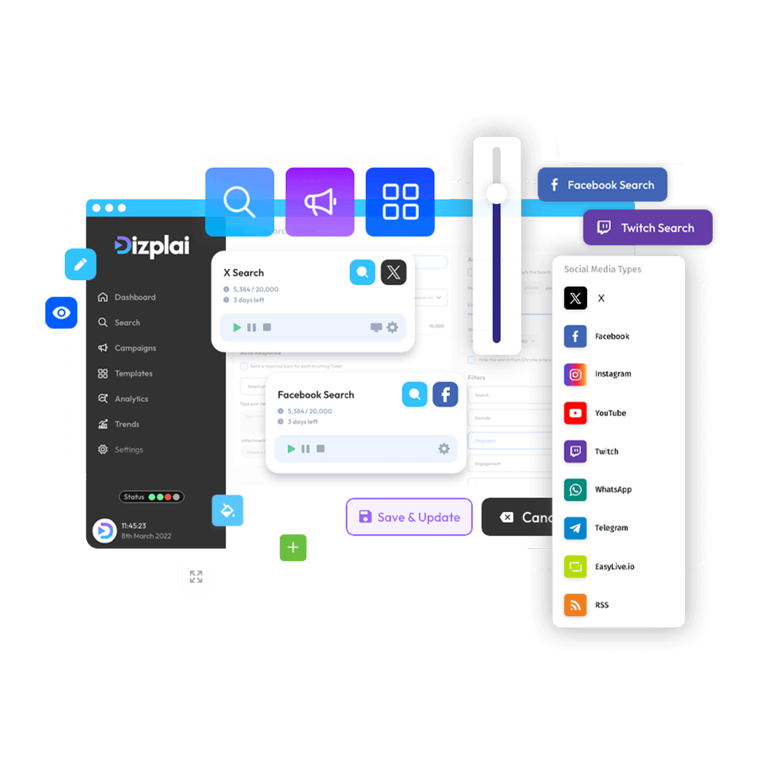 Contact UsAccess all the major social media platforms, popular messaging apps, data feeds, and trending topics.